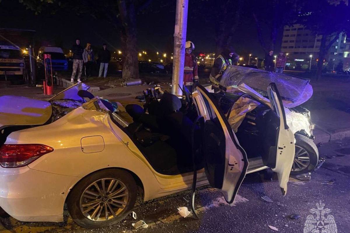 Сотрудники МЧС Калининградской области помогли мужчине, пострадавшему в ДТП. Автомобиль врезался в световую опору.