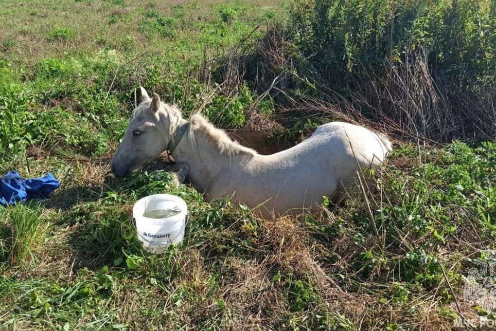 Сотрудники ведомства смогли вызволить лошадь с помощью крана-манипулятора.