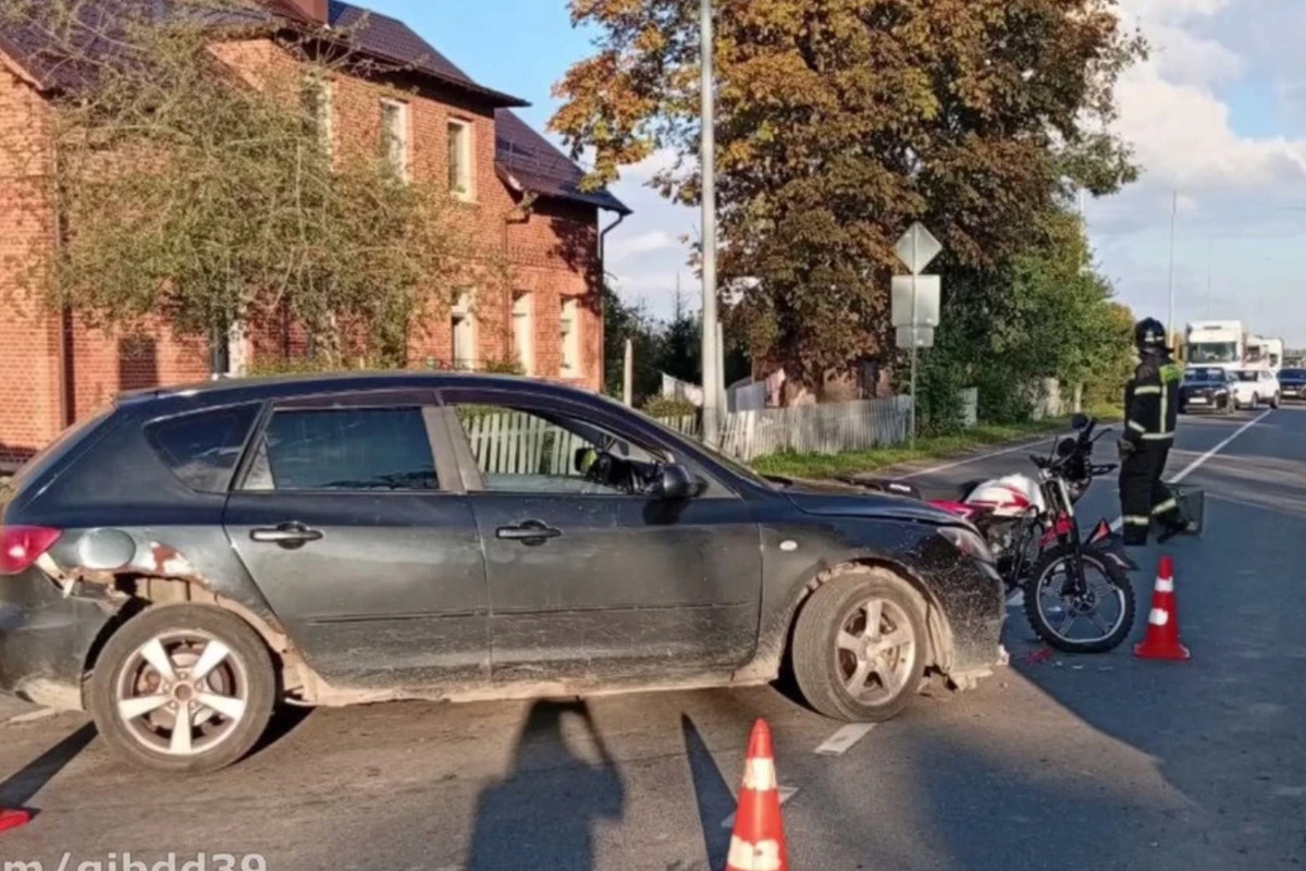 В Калининграде машина сбила мотоцикл с двумя подростками