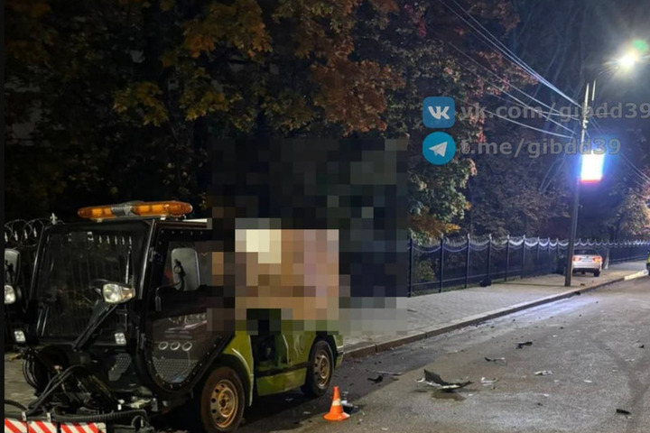 Её автомобиль врезался в машину коммунальщиков, которая убирала улицу. Фото: пресс-служба УГИБДД Калининградской области.