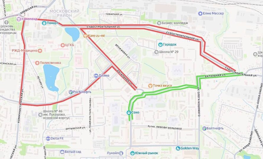 Направляют по улице Ульяны Громовой — Батальной — Олега Кошевого — Батальной.
