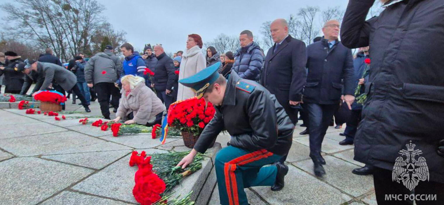 Сотрудники МЧС России возложили цветы, отдавая дань уважения советским воинам