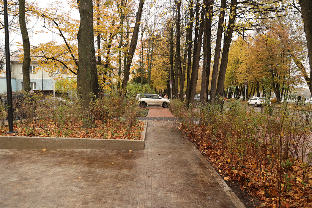 Здесь выложили пешеходные дорожки из клинкерной тротуарной плитки и гранитной брусчатки, оборудовали велодорожки из асфальтобетона. Входную группу украсила стела с изображением каштанового листа, не забыли и об озеленении: высадили кустарниковые растения. В дальнейшем собираются продлить парковую зону по улице Партизанской.