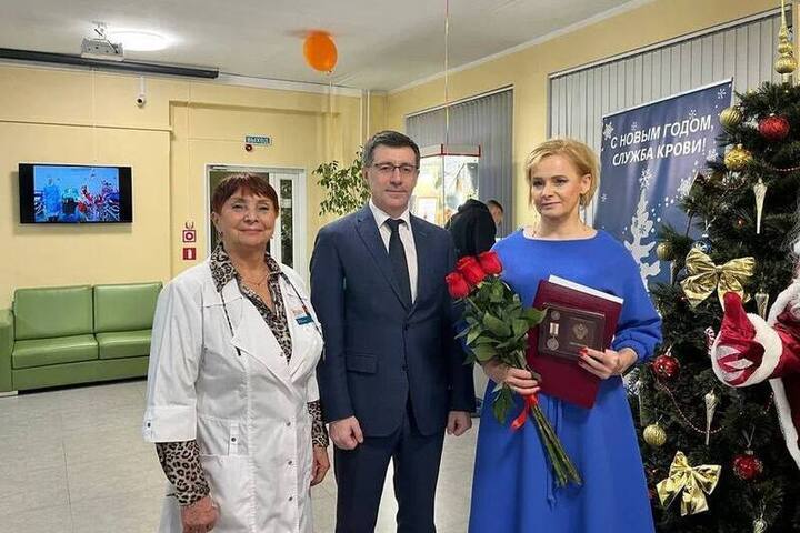 За активную позицию и многолетний личный вклад глава областного Минздрава Сергей Дмитриев вручил ей ведомственную награду — медаль за содействие донорскому движению.
